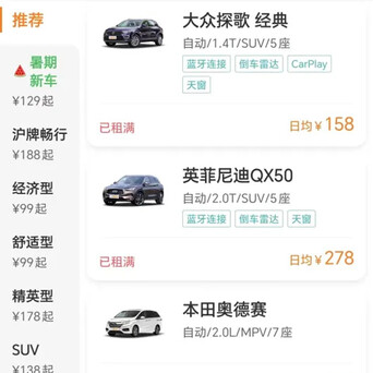 记者线上查询多地租车门店发现,暑期位于交通枢纽的租车门店车辆普遍紧张。上海虹桥高铁站的某租车品牌门店店员告诉记者,该店近几天已有十多款车型被订完,一些车辆甚至已经预订至8月份。该店员表示,暑期车辆流通极快,需要的用户建议提前几天下单。